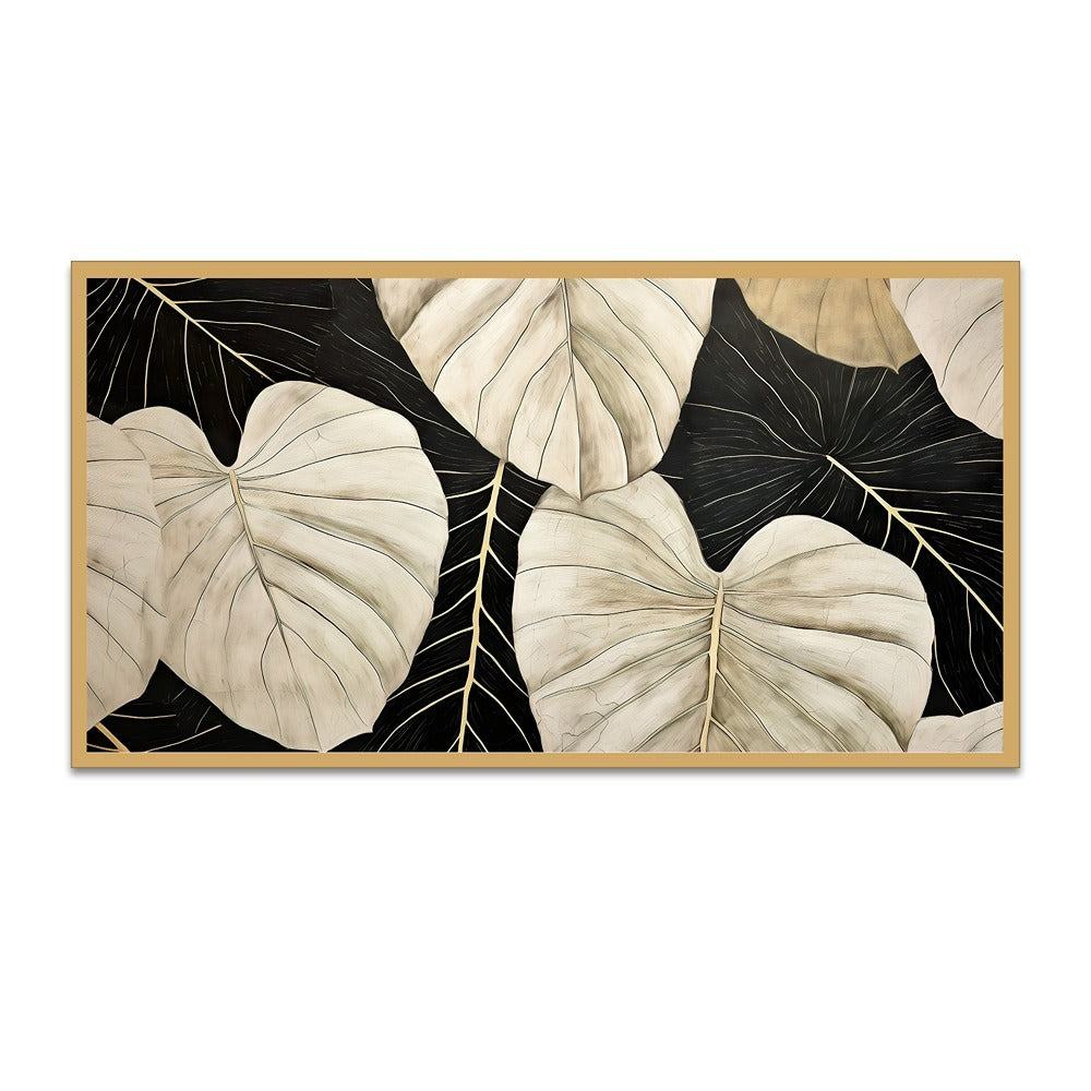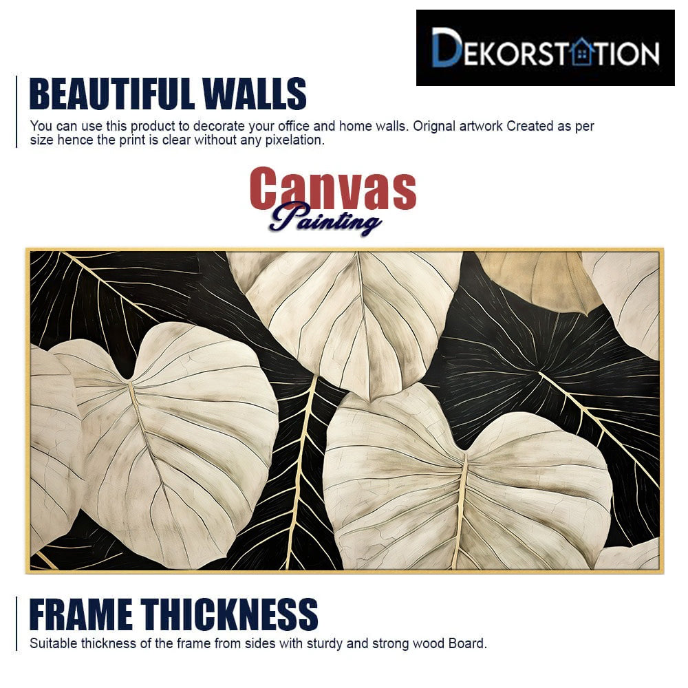 Abstract Illustration Plant Art Huge Leaves Black And Beige Canvas Wall Painting