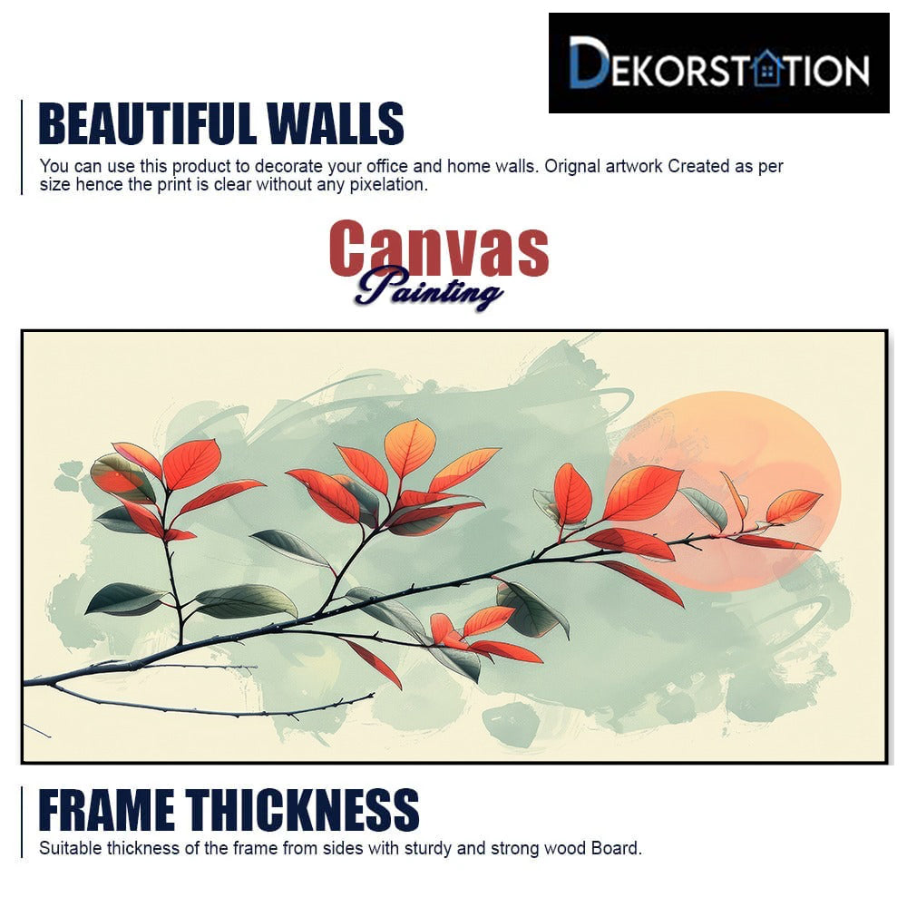Autumn Breeze Minimalist Botanical Art With Warm Sunset Painting