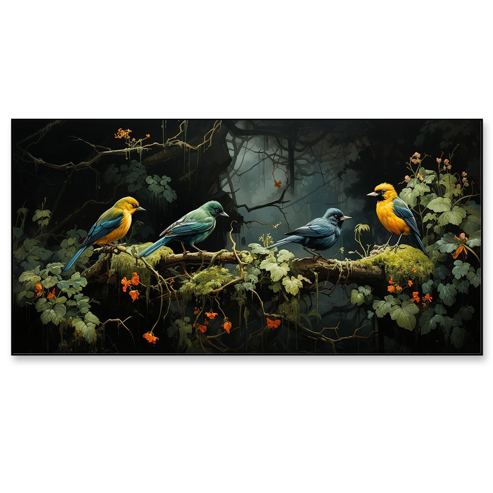 Beautiful Four Colorful Bird On The Branch Canvas Painting