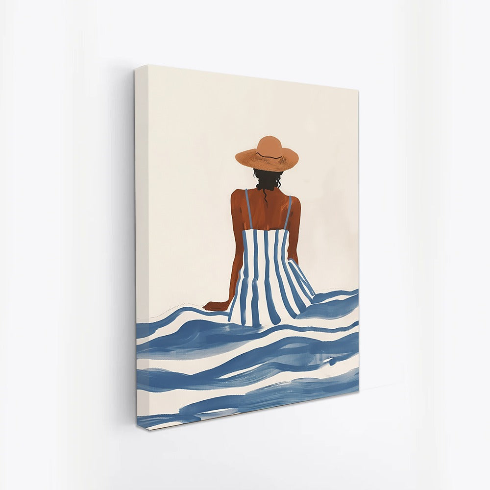Canvas Painting Ocean Breeze Stylish Woman in Sun Hat on sea ??wave Canvas Art for Wall Decoration Elegant Little Girl Moder Art Stretched Wall Paintings