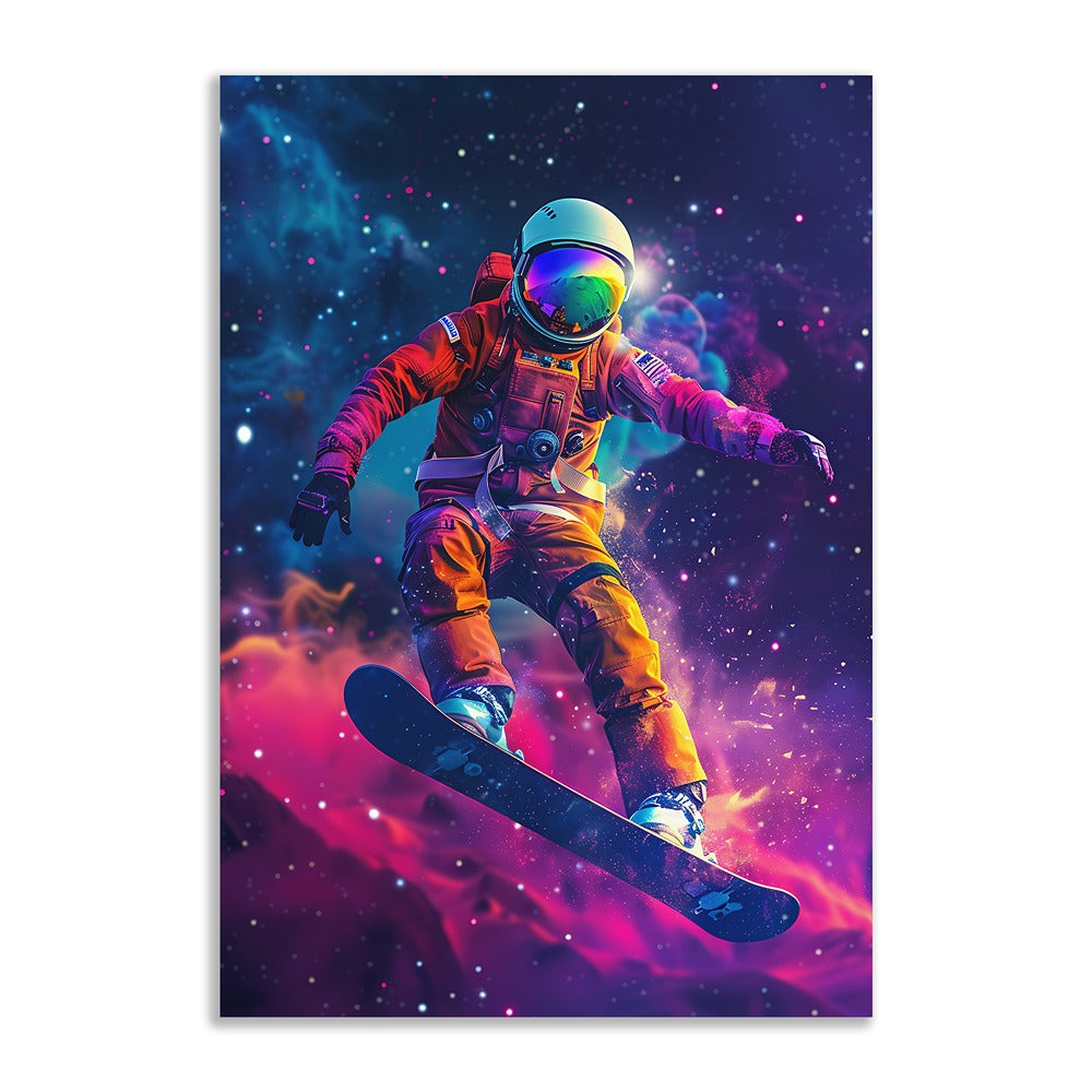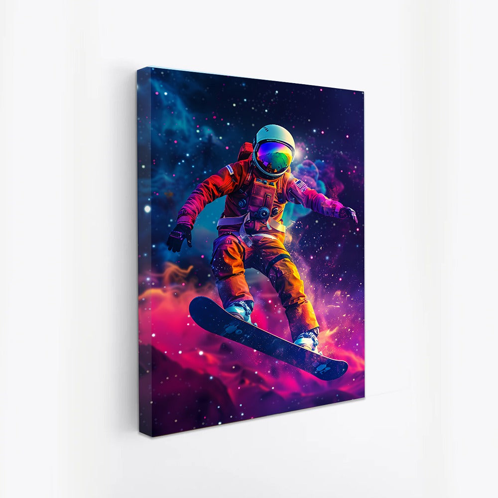 Canvas painting Spaceboarder Astronaut Snowboarding Through the Cosmos Vibrant Galaxy Canvas Art for Wall Decoration