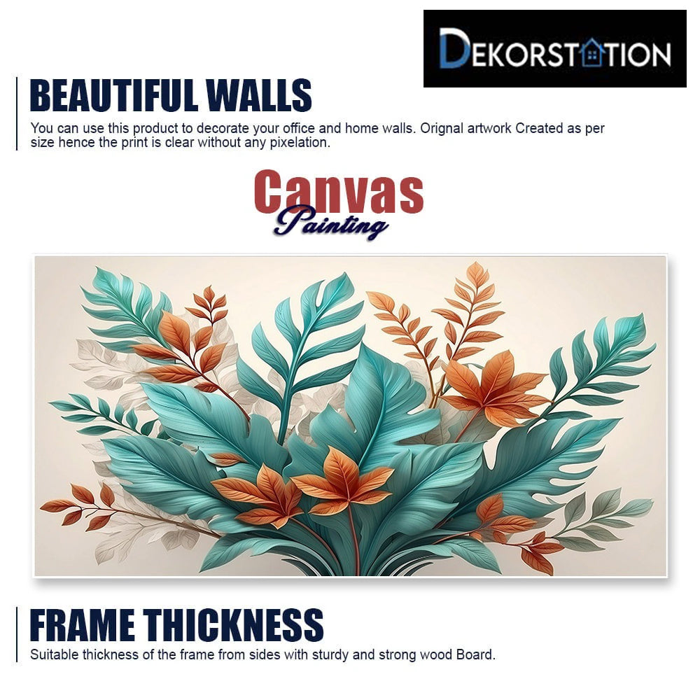 Elegant Botanical Bliss green and orange leaf Canvas wall painting Modern Tropical Leaf Wall Art for Sophisticated Decor