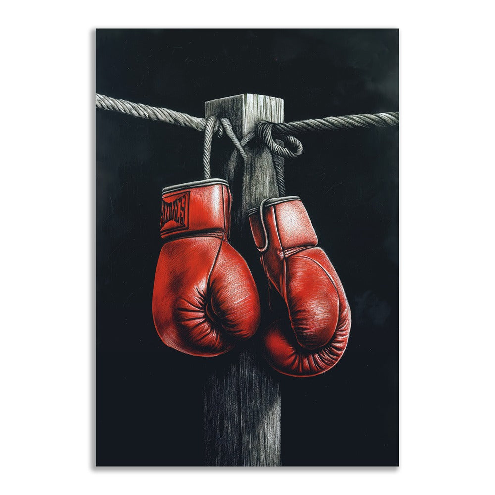 Final Round Bold Red Boxing Gloves Canvas wall Painting for Gym Wall Decoration Elegant boxing Stretched Wall Paintings