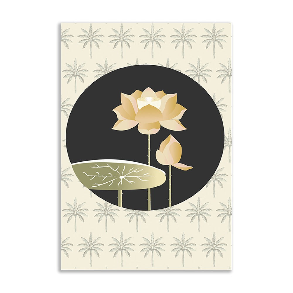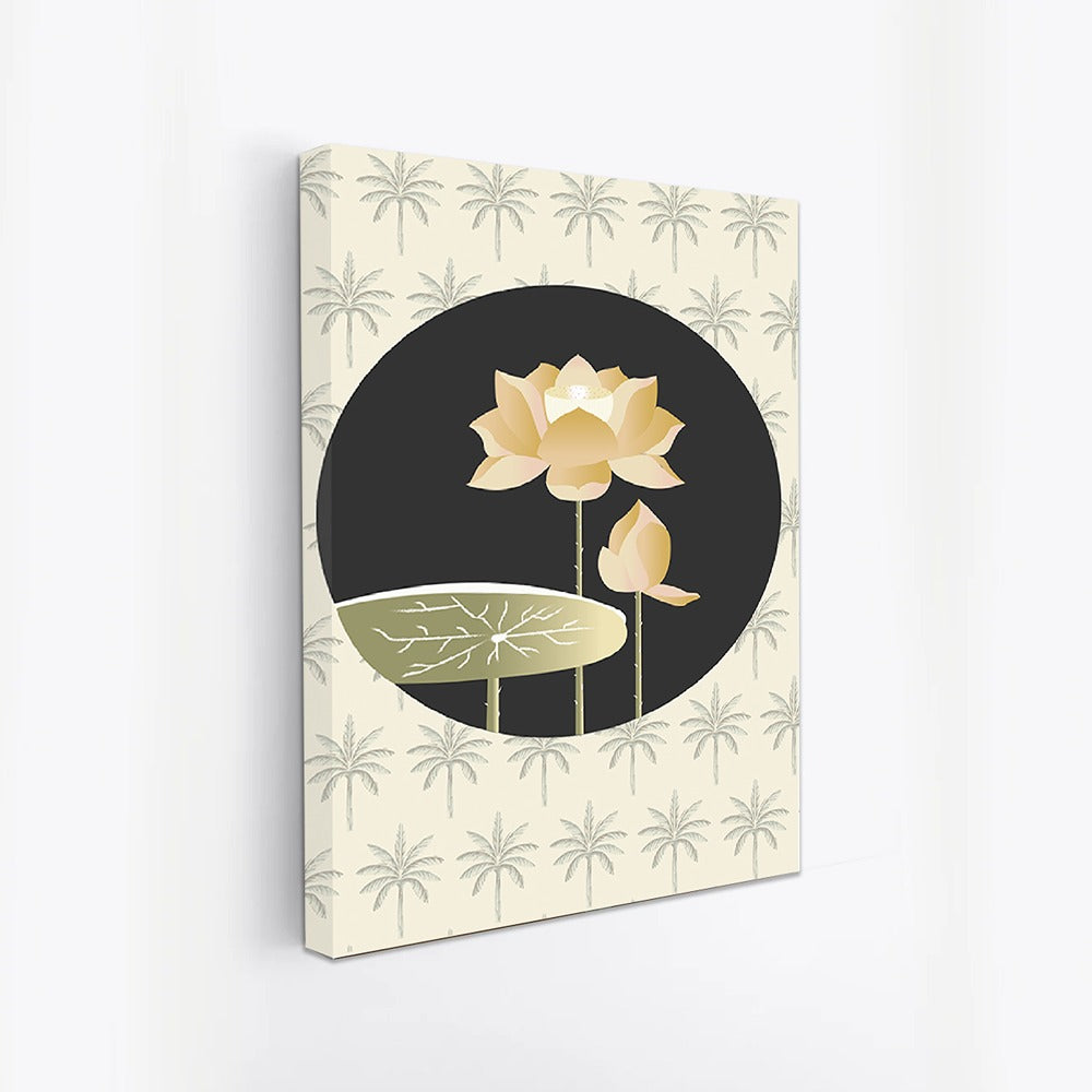 Lotus Flower Canvas Wall Painting Minimalist Botanical Canvas Painting with Palm Background, Modern Floral Artwork for Wall Decoration Elegant Modern Art Stretched Wall Paintings
