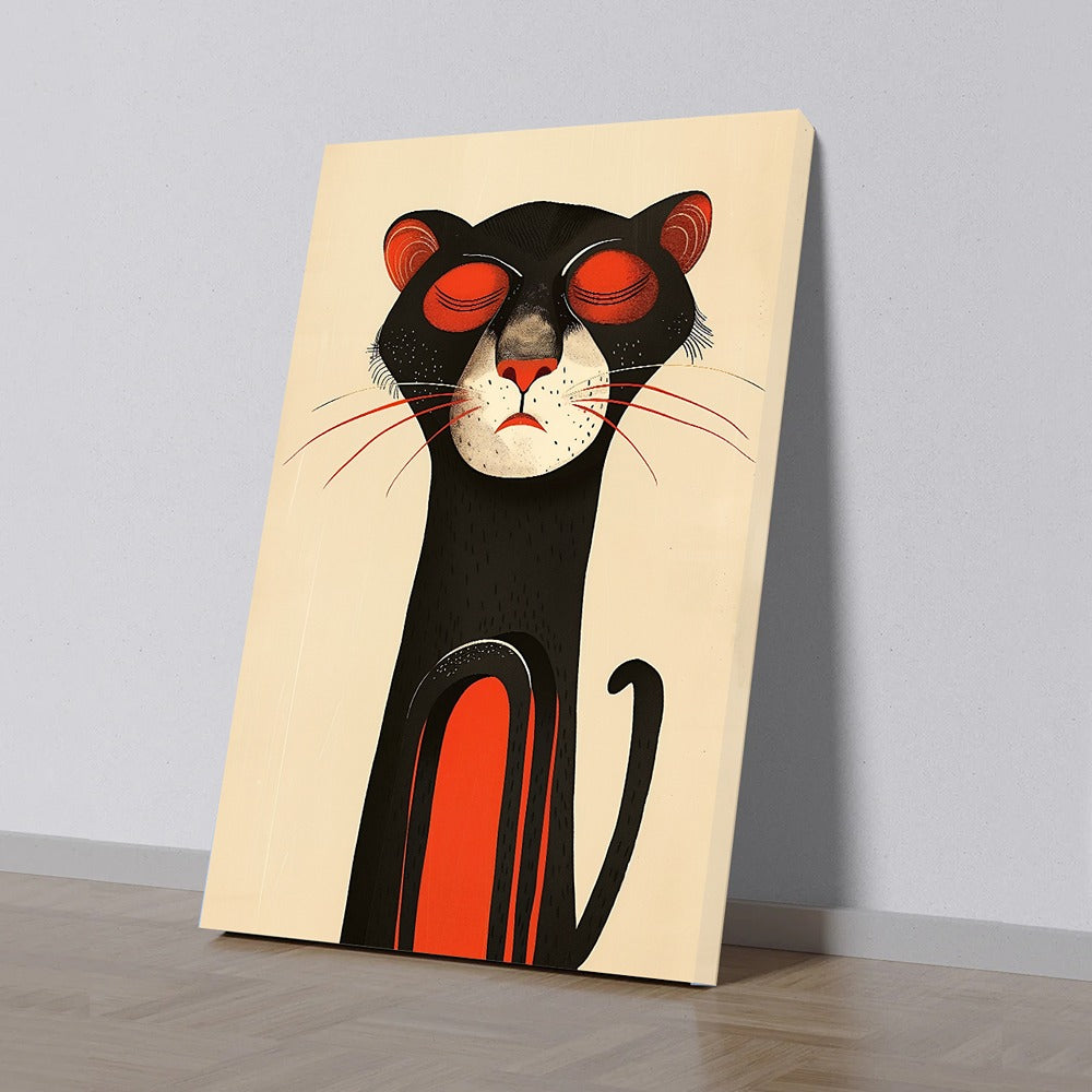 Meditating Black Cat Canvas Wall Painting Kids Decor Modern Minimalist Animal Canvas Painting Cat Lovers for Wall Decoration Elegant Kids Art Stretched Wall Paintings
