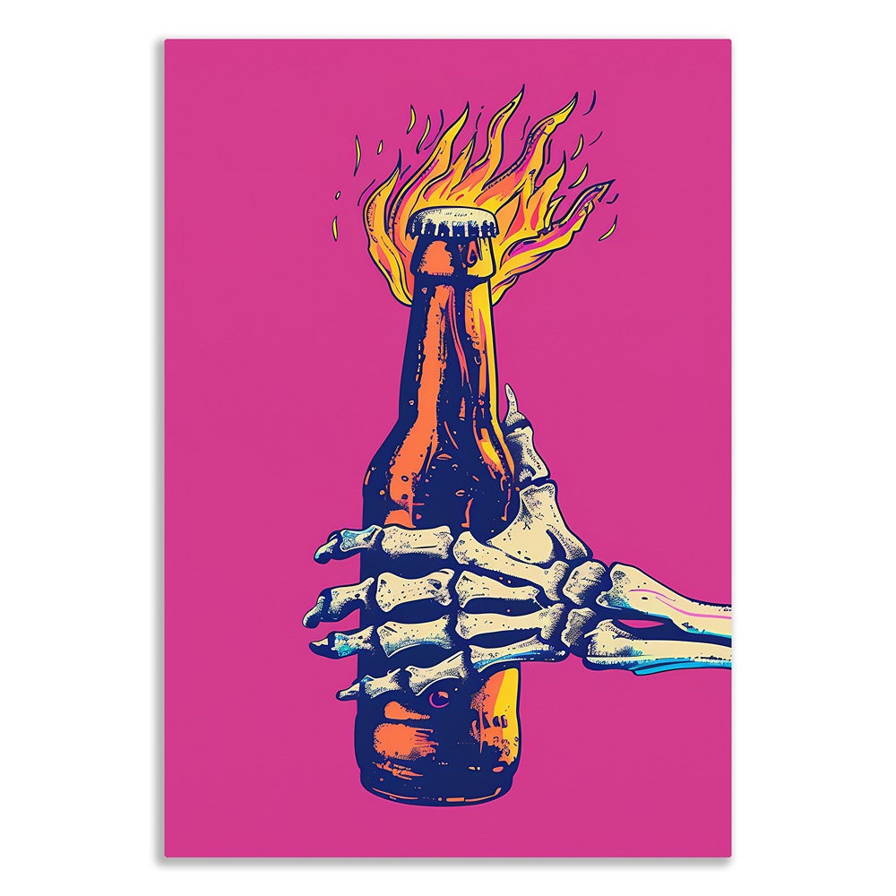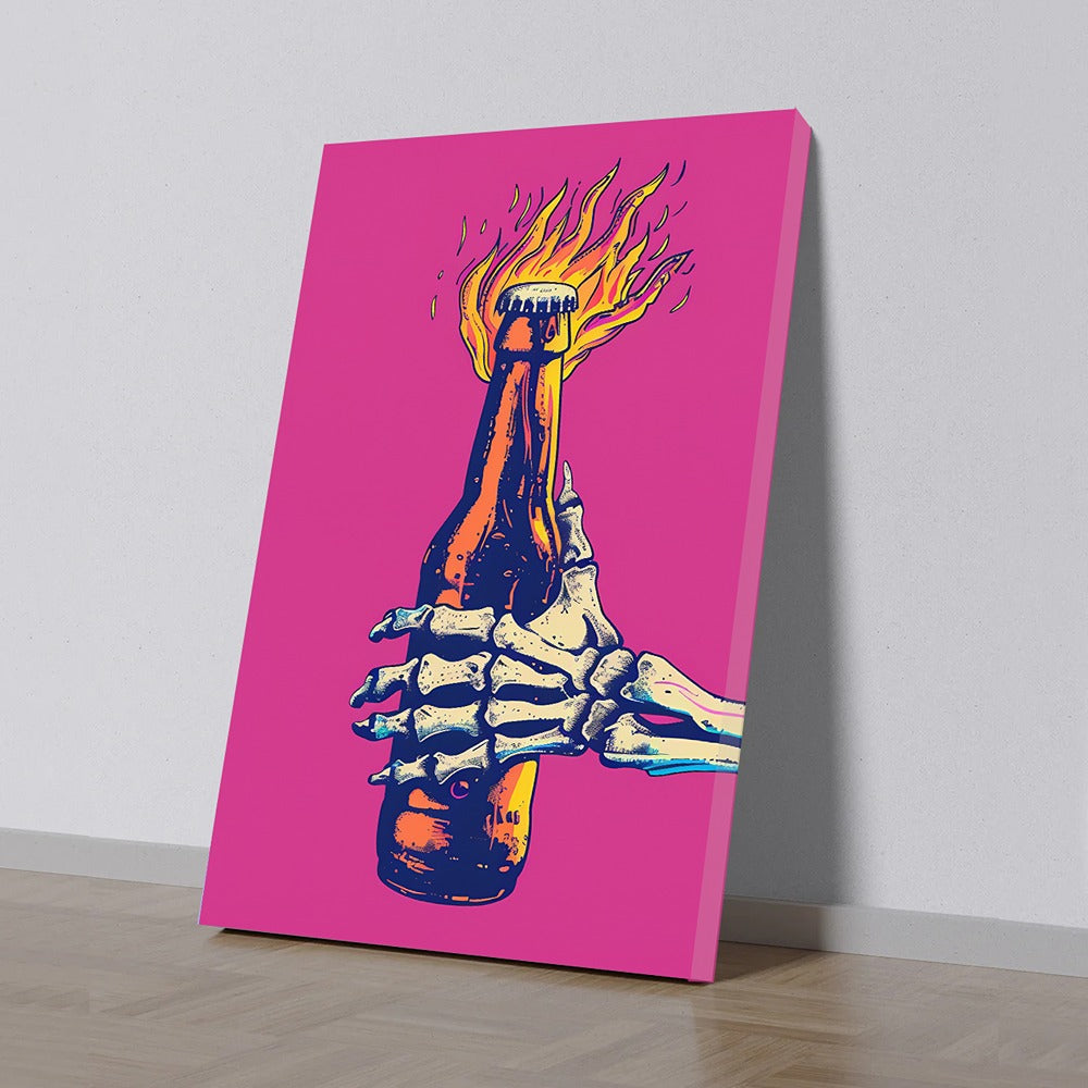 Skeleton Grip on Flaming Bottle Canvas Painting Party Node On Bold Pop Art Canvas Wall Decor for Wall Decoration Elegant Moder Art Stretched Wall Paintings