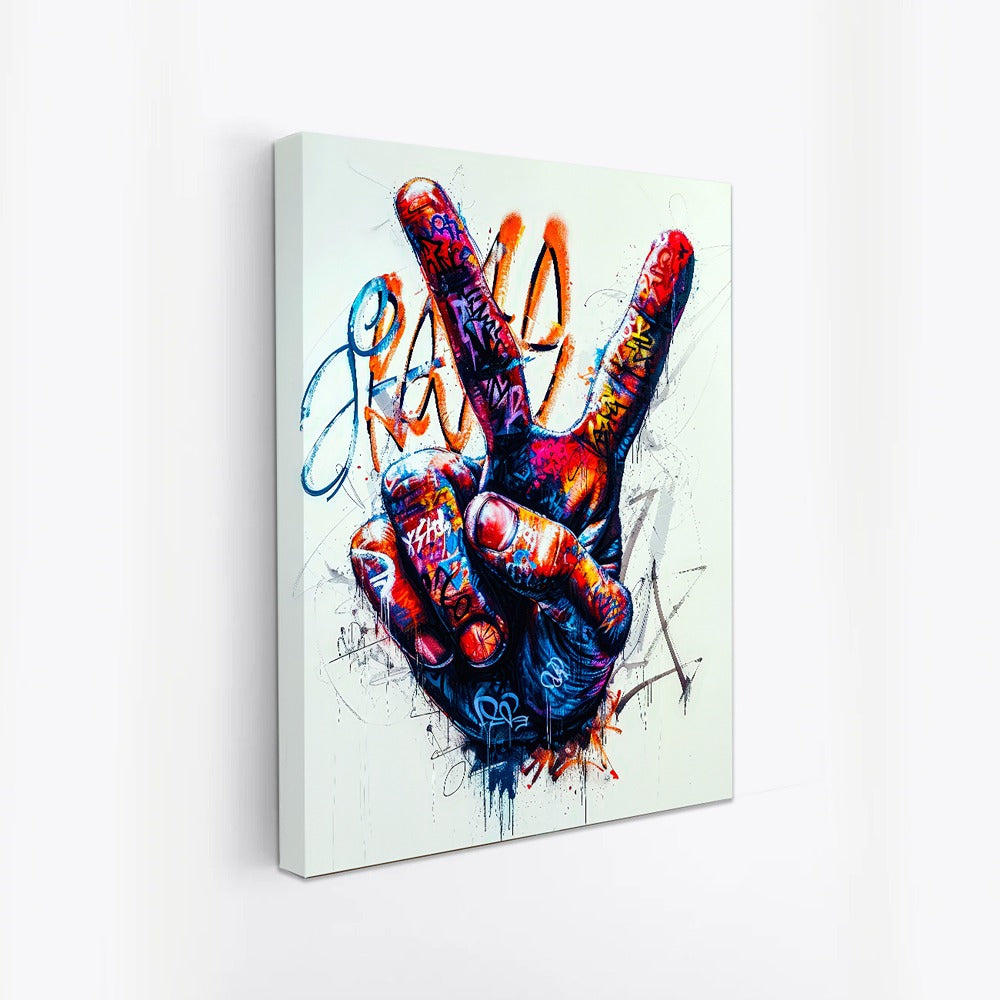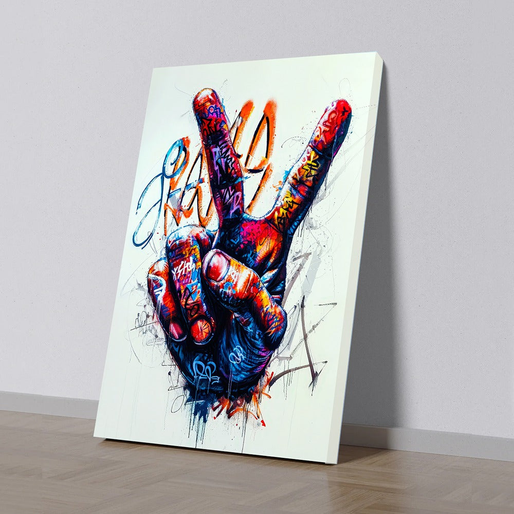 Victory Singh Canvas Cainting Urban Vibes Peace Colourful Victory Hand Graffiti Street Art Canvas Painting for Wall Decoration Elegant Beautifull Victory Art Stretched Wall Paintings