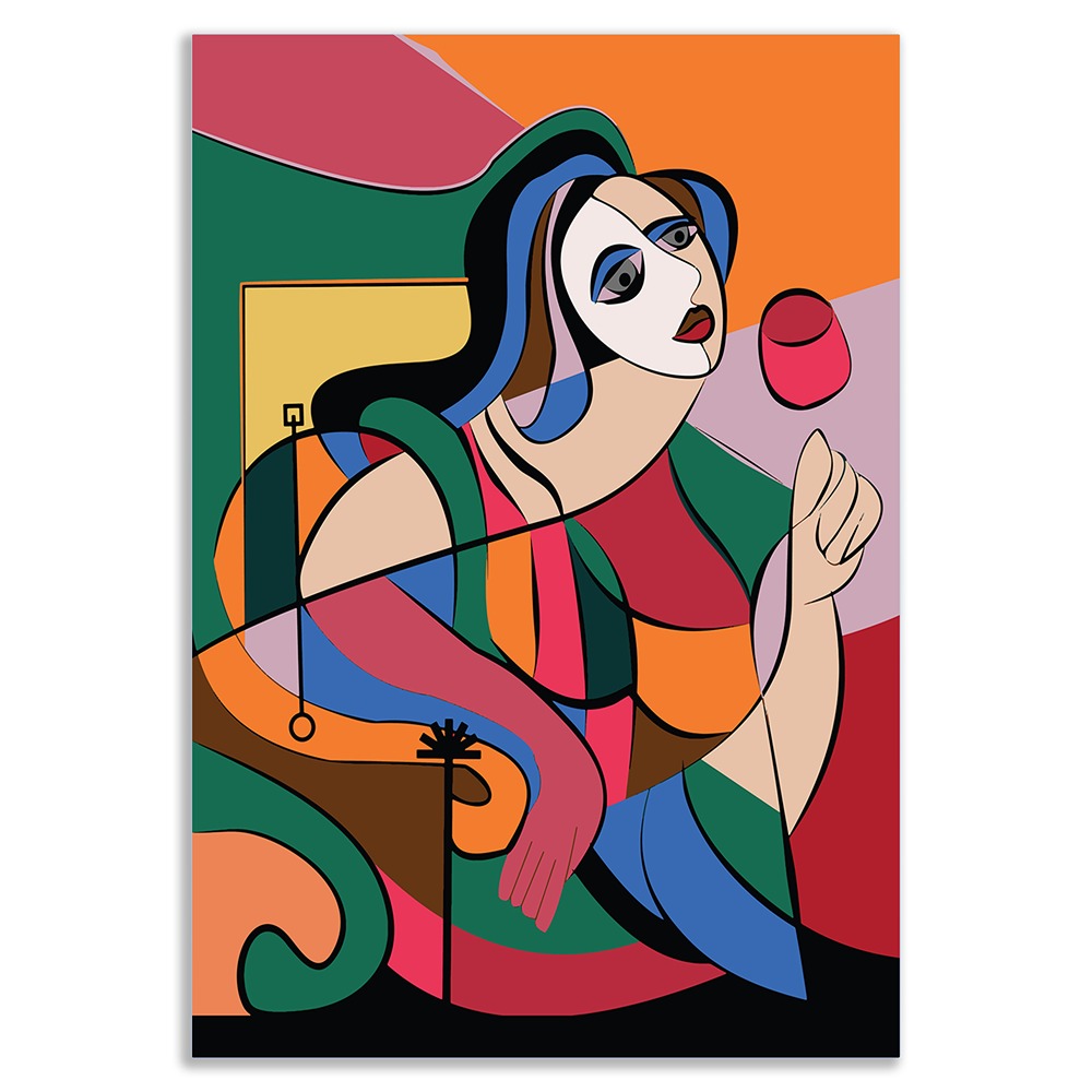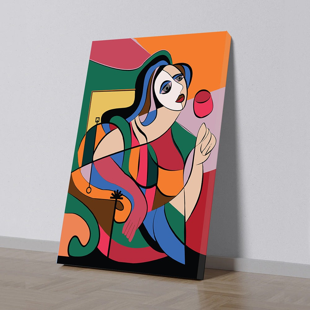 Woman with Wine Bold Abstract Modern Canvas Wall Painting in Picasso Inspired Style for Wall Decoration Elegant Modern Art Stretched Wall Paintings